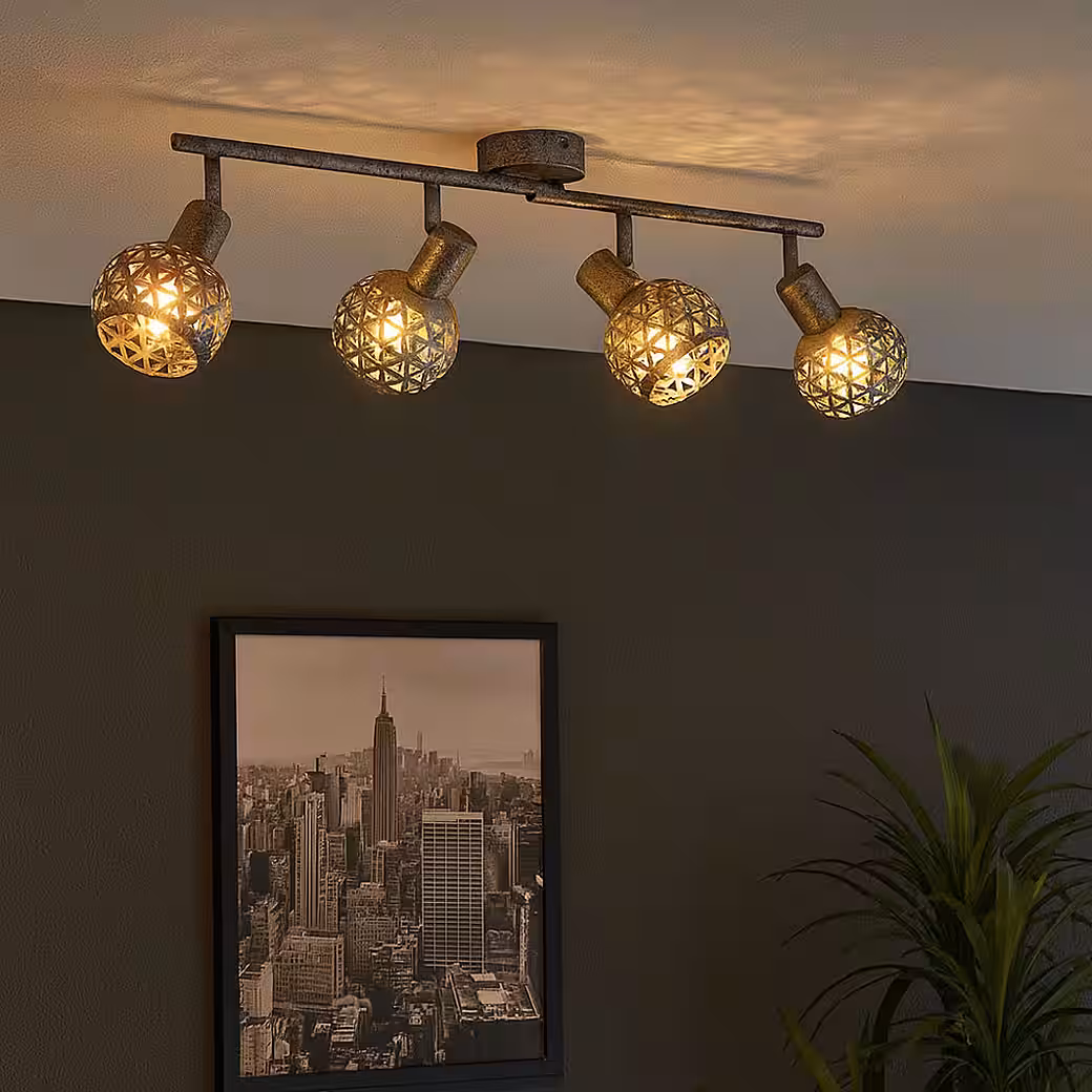 This ceiling spotlight (75.2×10 cm) impresses with its beautiful design made of antique grey metal.