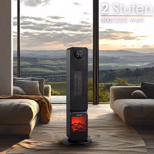 Bring warmth and atmosphere into your home with our modern electric fireplace fan heater, which offers a perfect combination of stylish design, powerful heating technology and smart functions. This fan heater is not only a visual highlight, but also convinces with its simple operation and high safety.
