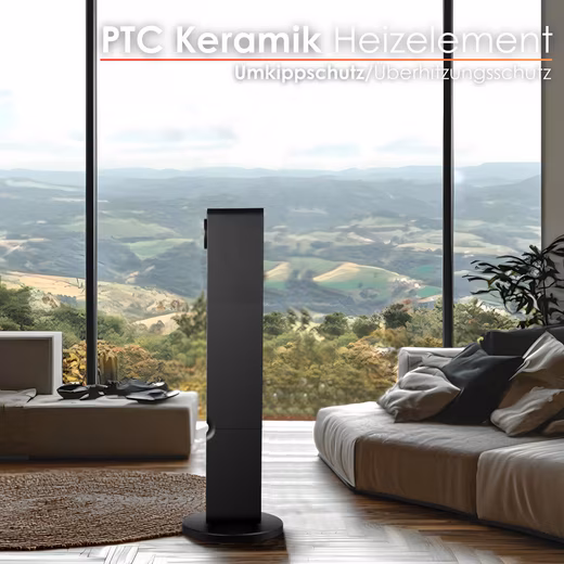- PTC Ceramic Heating Element: Thanks to the high-quality PTC ceramic heating element, the heat is distributed efficiently and evenly throughout the room. This technology ensures a fast heat-up time and keeps the desired temperature constant, saving energy.