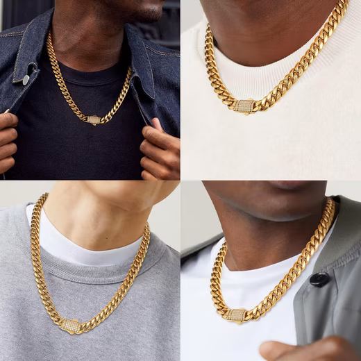 Be the first to review “Chains and Bracelet Set Curb Chain Men 12mm Gold Cuban Link Chain Stainless Steel Hip Hop Chain”