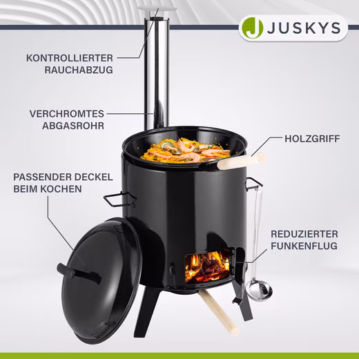 • Large kettle: Goulash kettle with a 17-liter capacity; plenty of space for mulled wine, stew, goulash & more