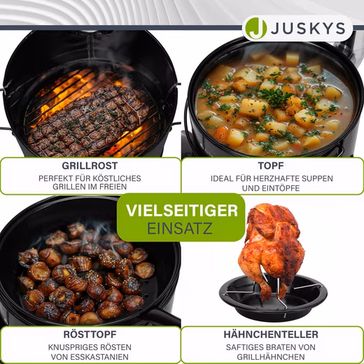 This pan is ideal for crispy frying or roasting chestnuts. With the appropriate insert, baking delicious rotisserie chicken is also no problem.