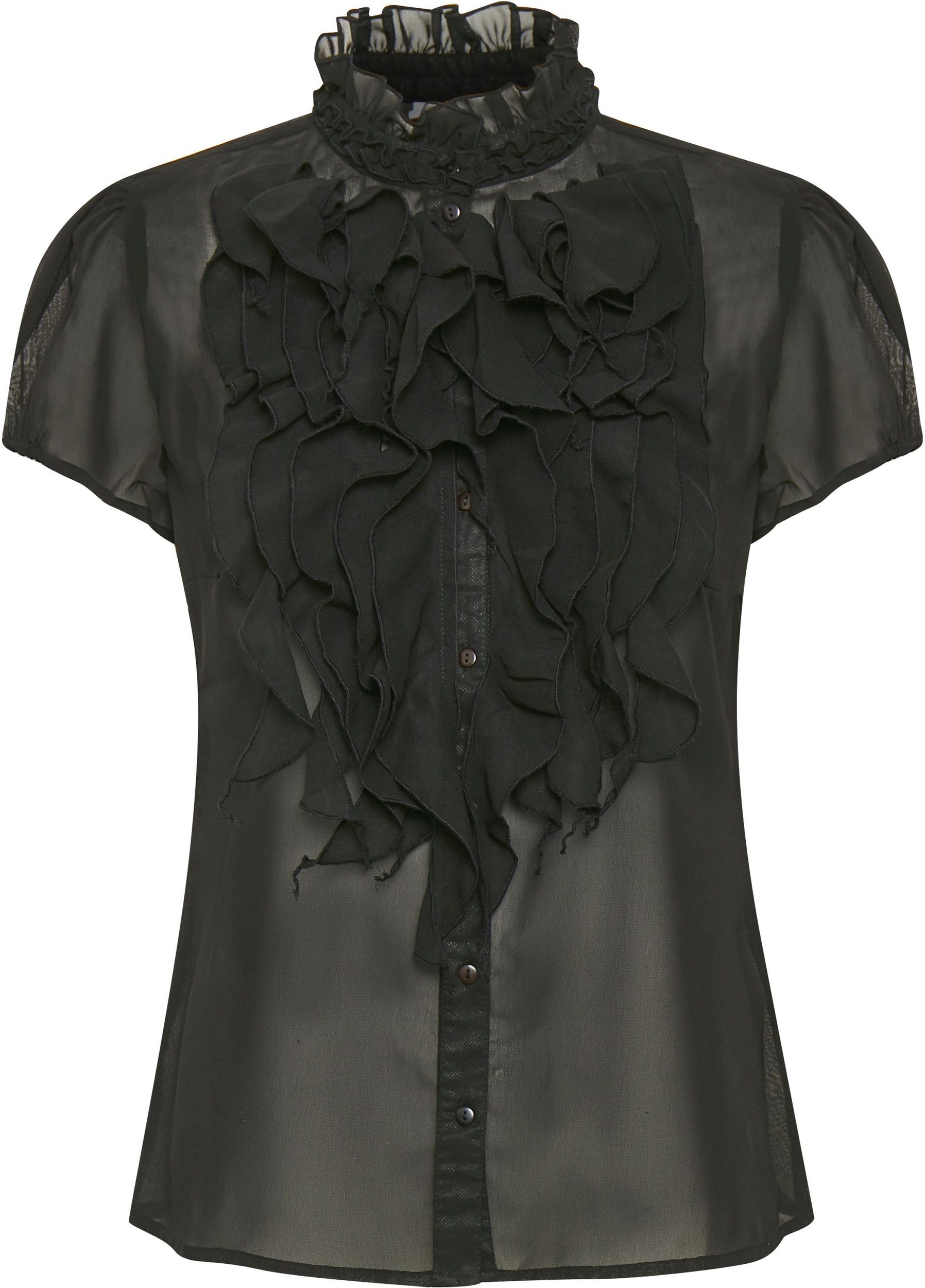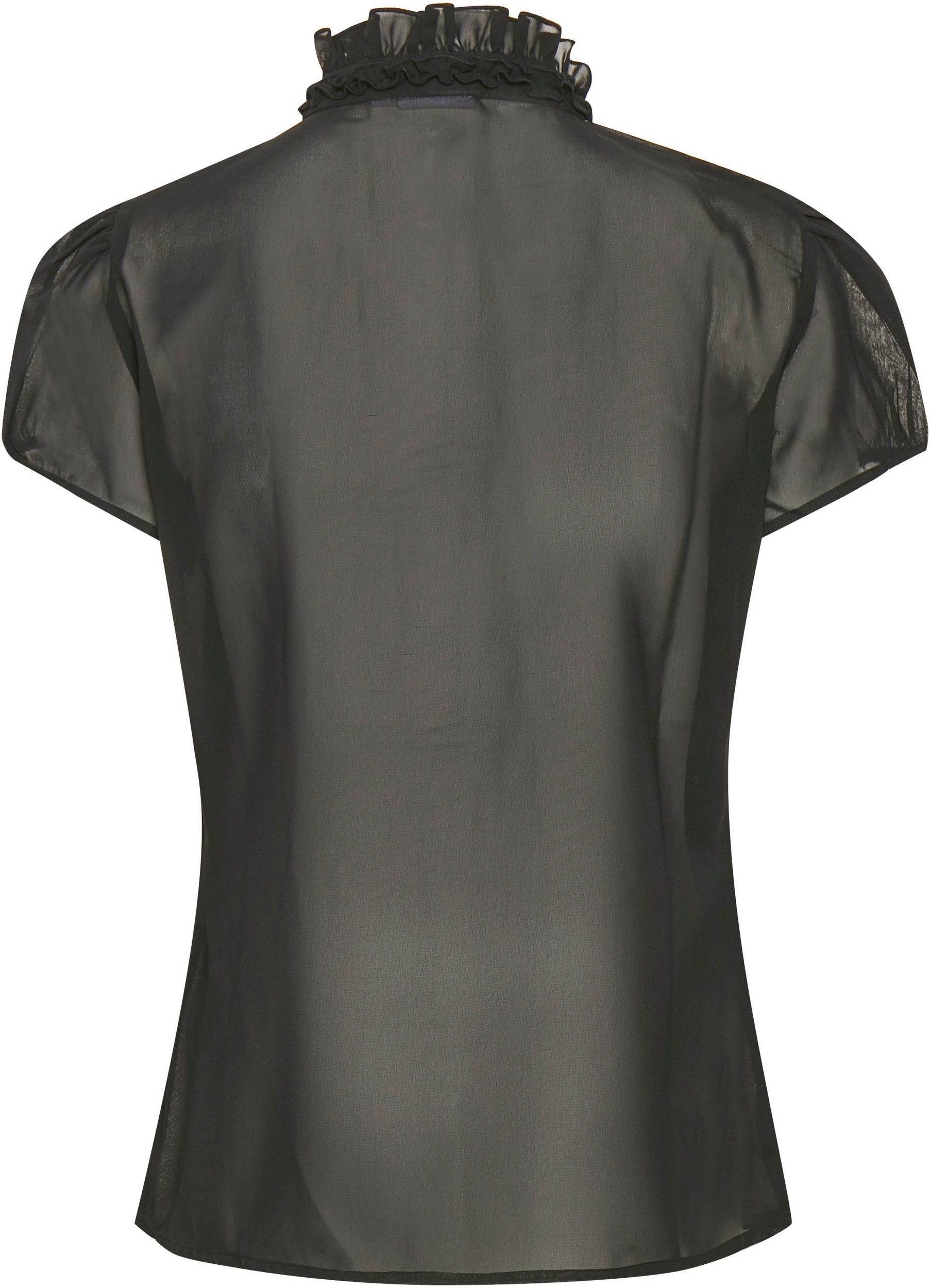 The “LiljaSZ SS Shirt” chiffon blouse by Saint Tropez is a stylish choice for formal events or the office. The stand-up collar is not turned down, sits close to the neck, and is a foundation for tough outfits. The chiffon blouse features a button placket.