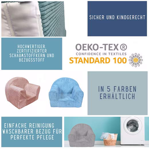 Universal Design: The armchair is available in different colors, so it fits perfectly into any children’s room and meets your child’s taste.
