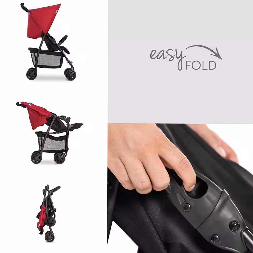 • It folds up quickly and easily: simply slide the side locks upwards and the buggy is folded compactly.