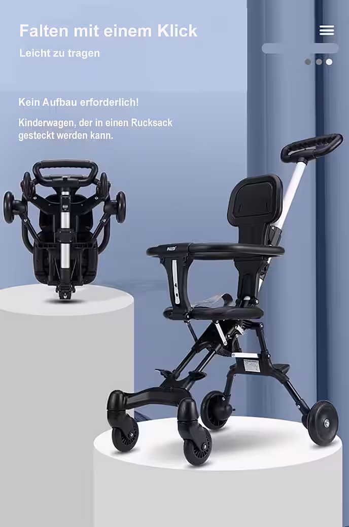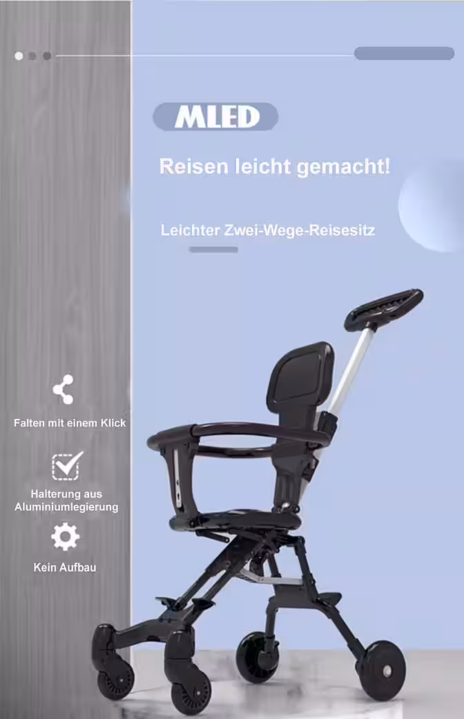 – Functions: Practical click system without adapters, adjustable to face forward or forward, ultra-space-saving folding mechanism