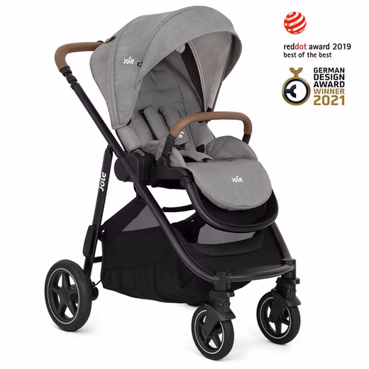 The Joie Versatrax Pebble buggy and stroller is ideal for walks with your baby. It comes with a cup holder, rain cover, insect net, and adapters . The adjustable backrest , large canopy , and 5-point harness with SoftTouch padding offer comfort and safety.