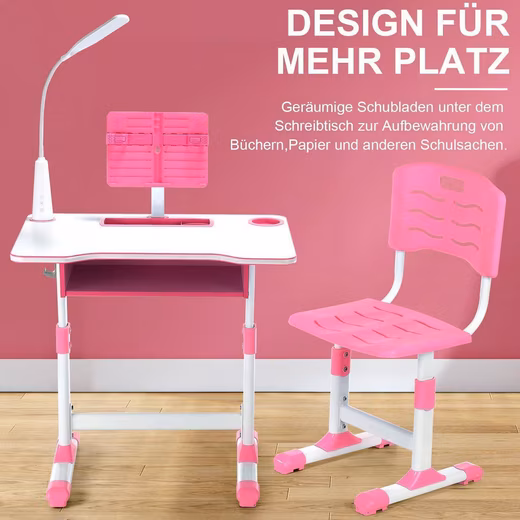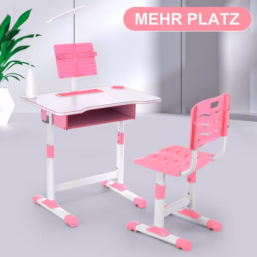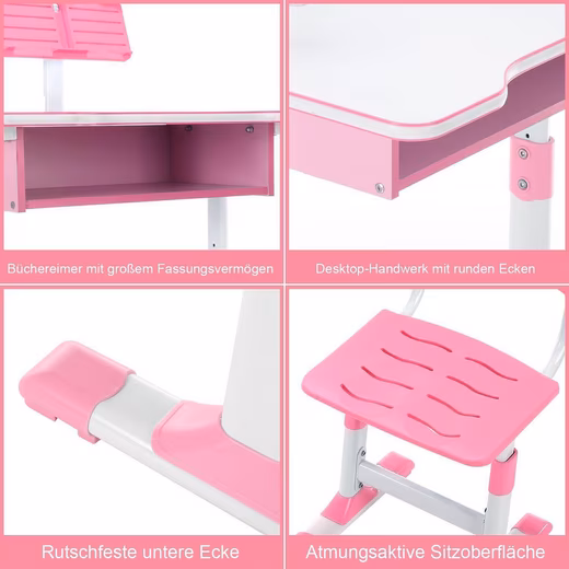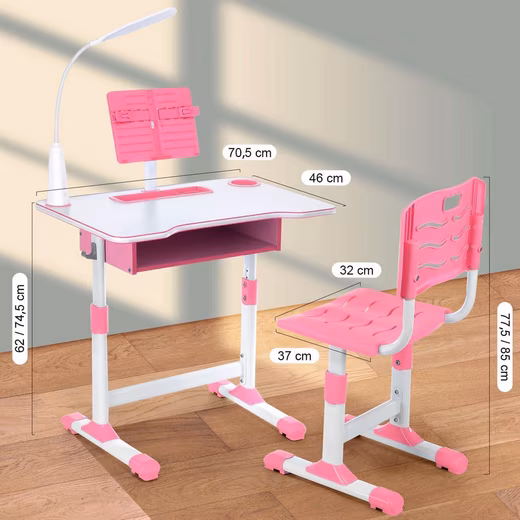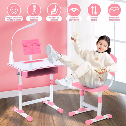 - Height-adjustable children’s table and chair: Promotes healthy sitting posture due to adjustable height and ergonomic backrest, reduces back and eye strain