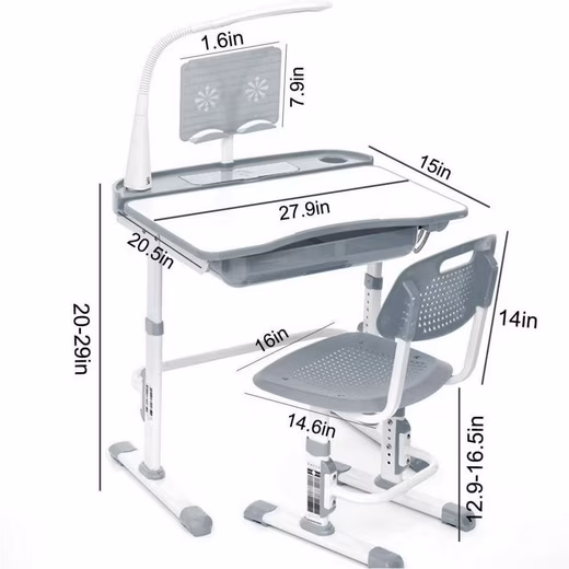Children’s Desk Chair Set Adjustable Eye Protection Lamp Gray