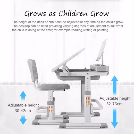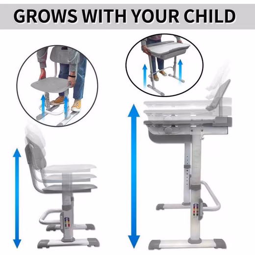 - Ergonomic, Height-Adjustable Design:Â Table and chair grow with your child – suitable for age groups from 3 to 15 years; manual height adjustment ensures precise adjustment.