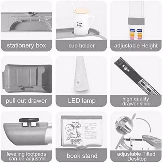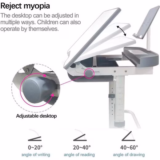 - 0–45° tiltable desk: Adapts to activities such as drawing, reading or writing and supports a good learning attitude.