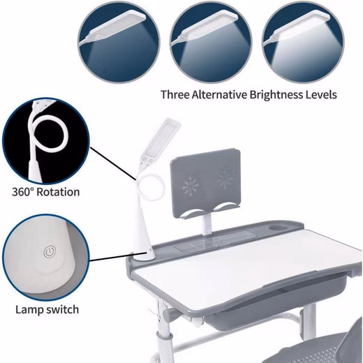 - Eye protection lamp & book stand:Â The white lamp with 3 brightness levels provides pleasant light when writing and reading, the integrated book stand protects eye relief and keeps things tidy.