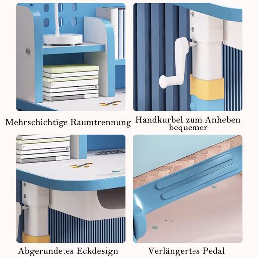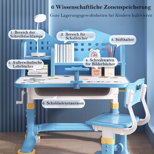 - Golden distance designGolden distance design can keep child upright sitting posture, protect children’s vision. Spacious drawer under desk to store school supplies.