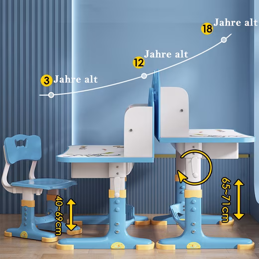 - Height adjustableDesk chair set are both height adjustable, desk height from 95-101cm and chair from 63-69cm, suitable for children aged 3-18 years.