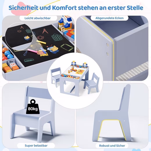 Imagine: Your child enters their own blue learning and playground – stable, safe and ready for the next creative session. This children’s seating group combines a desk, dining table and play area in one compact, ergonomic set. Suitable for ages 3 and up, it fits perfectly in playrooms, children’s rooms, daycare centers or daycare centers – and makes every moment special.