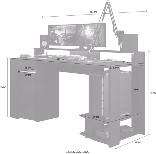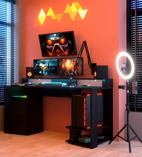 The high-quality gaming table »Gaming« from Parisot including LED lighting is an eye-catcher in every gaming room. Its design is modern and in subtle colors. The gamer table is equipped with a large storage area for your monitors. A useful headset holder is one of its features. To store your game console, PC case and other gaming accessories, the gaming desk also has a large open tower compartment. Thanks to the large work surface, your keyboard, controller and gaming mouse will find a place here. The integrated LED lighting with colour change provides great lighting effects. Impresses with plenty of storage space and functional highlights: the high-quality gaming table »Gaming« from Parisot including LED lighting.