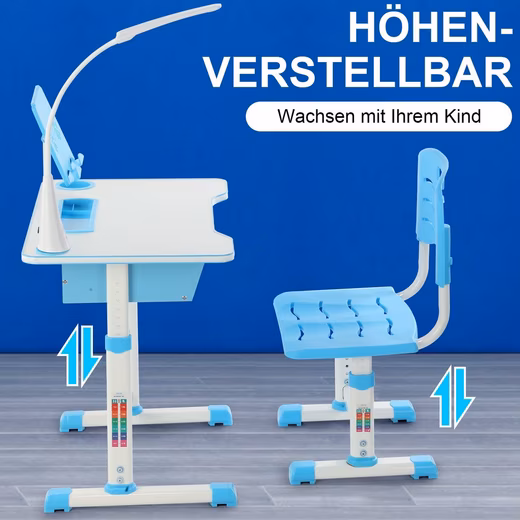 - The table height can be adjusted from 62cm to 72cm, the chair height can be adjusted from 30cm to 40cm.
