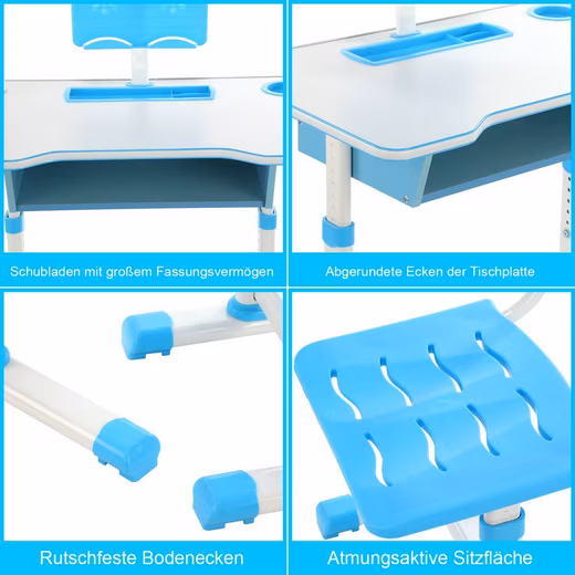 - Rounded corners and anti-pinch protection for better protection of children. The ergonomic sthul promotes the posture of children and protects their eyesight.