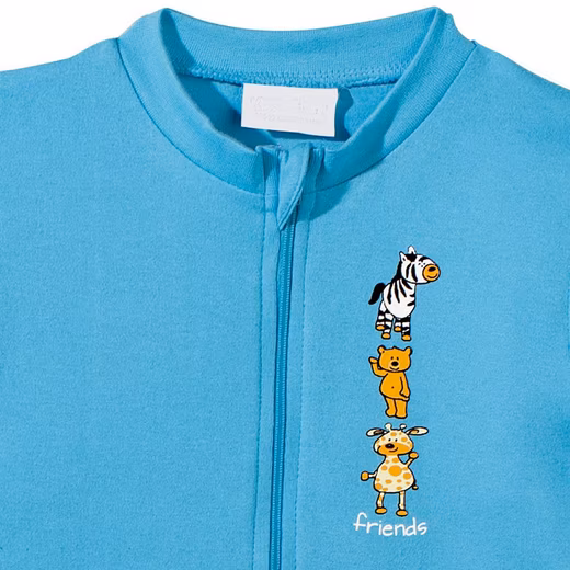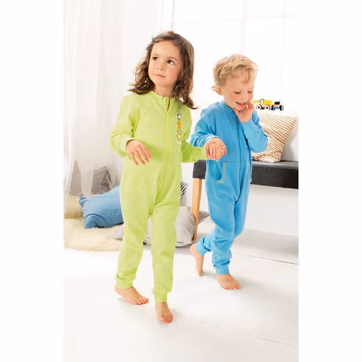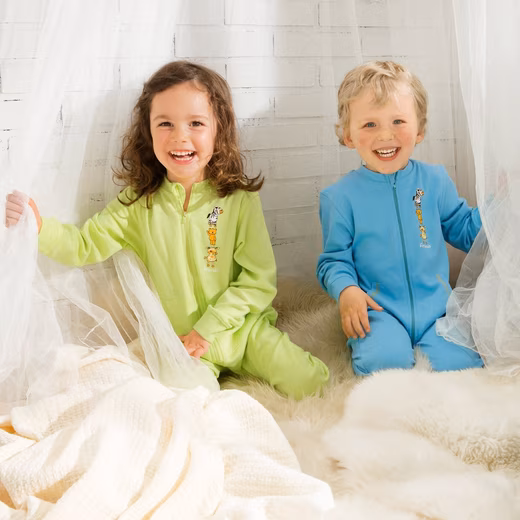 Erwin Müller  Interlock Jersey Children’s Sleepsuit, 2-Pack. This comfortable sleepsuit with a cute animal print will tuck your little one into dreamland. It features cuffs on the sleeves and legs, as well as kangaroo pockets. The long zipper makes it easy to put on. The skin-friendly, naturally stretchy fabric ensures exceptional comfort.