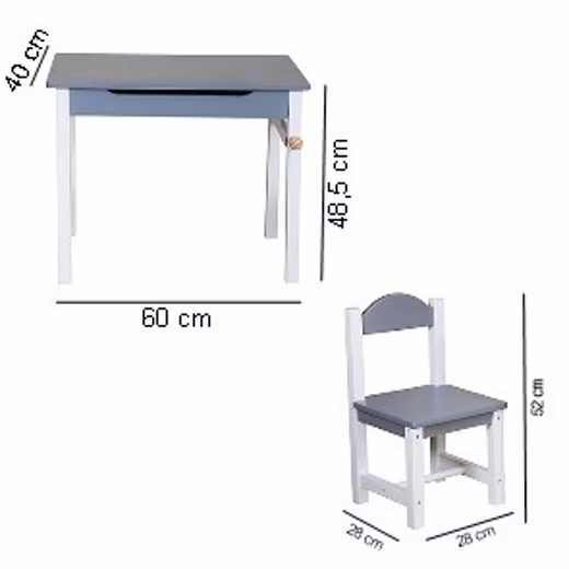 ; Chair (L x W x H): 28 x 28 x 52 cm .