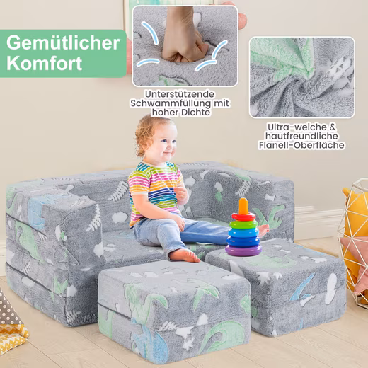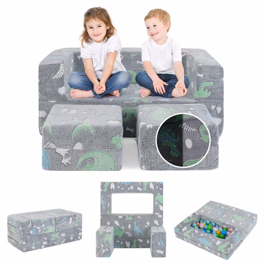 A launching pad for imagination and adventure, this modular sofa can be transformed into all sorts of cool shapes, such as a ball pit, a hideout or a puppet show. The cute patterns of the sofa are designed for children who are afraid of the dark. They glow in the dark and turn fears into fairy tales. Made with a love of comfort and safety in mind, these fluffy flannel sofa blocks are filled with supportive foam, making them the perfect cuddle spot for your little ones. They are also the ideal base camp for all kinds of active play, boosting their creativity and energy. With the removable, machine-washable cover, cleaning is a breeze, saving you time for important parent-child interactions. Make your children happy and watch their delighted faces grow thanks to our glowing play sofa!