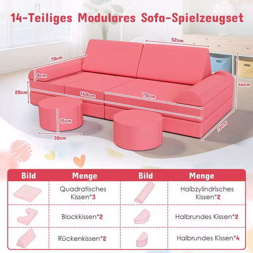 Children’s Sofa Play Sofa Cord, 14-Piece Modular Children’s Play Couch