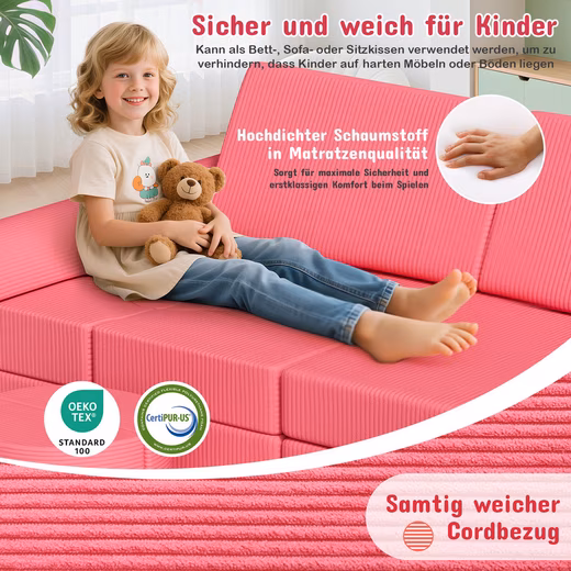 The children’s play sofa is made of mattress foam without hard materials. This increases safety and ensures first-class play comfort and a pleasant play environment for children.