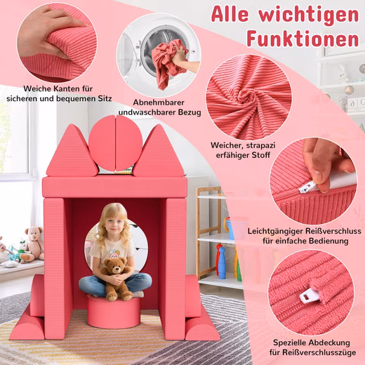 Play Sofa Cord, Children’s Sofa Building Blocks, 14-Piece Modular Children’s Play Sofa, Play Sofa for Kids, Creative Play for Cuddle Corner in Children’s Room