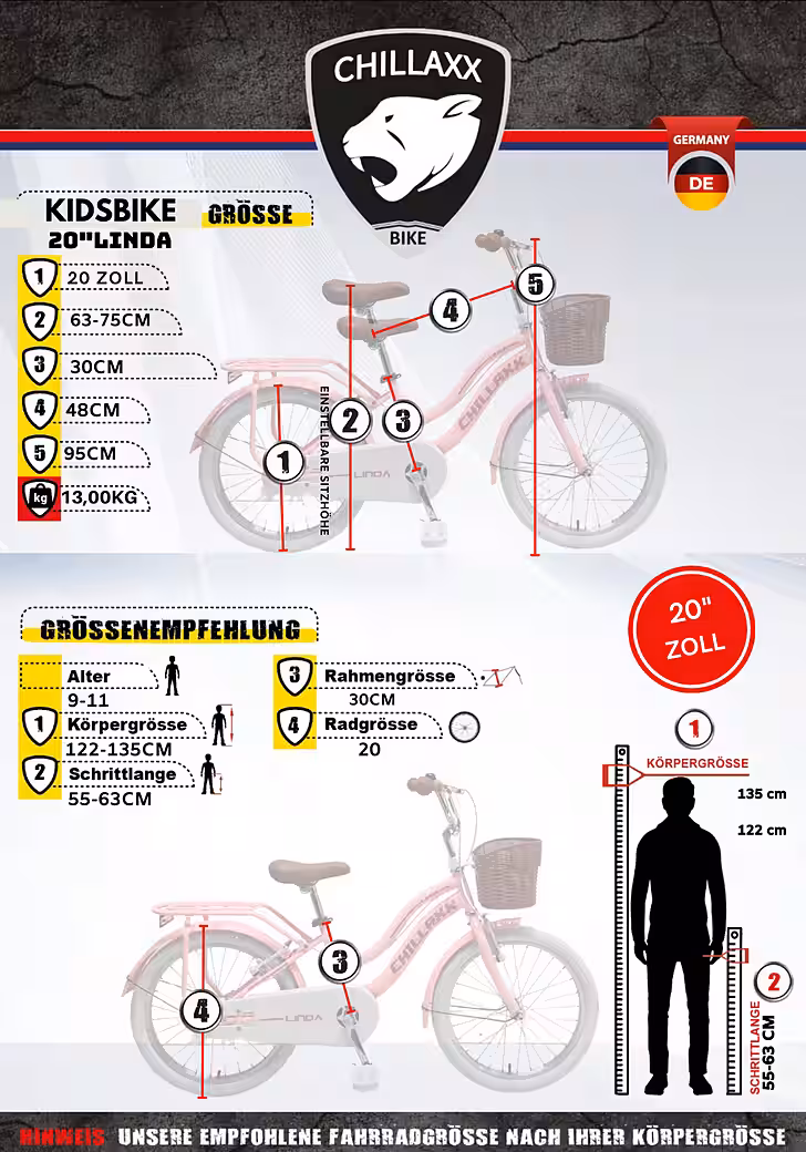 - LIGHTWEIGHT CHILDREN’S BICYCLE – This 20-inch children’s bicycle is ideal for the daily commute to school. We recommend it for children with a height of 115 cm or more.
