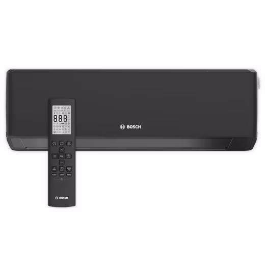 BOSCH Climate 7000i Air Conditioning Set – Smart comfort on demand. Wall unit and outdoor unit with 3.4 kW for rooms up to approx. 40 m². Experience a new dimension of living comfort with the BOSCH Climate 7000i. This innovative single-split air conditioner sets standards in design, efficiency, and functionality. Available in three stylish colors and five performance levels, the Climate 7000i adapts perfectly to your individual needs and always ensures a pleasant indoor climate and excellent air quality. Details of the Climate 7000i air conditioner: Cooling and heating, indoor and outdoor unit, single-split air conditioner, air-to-air heat pump, energy efficiency A+++ in cooling and heating, refrigerant: R32, energy-saving Save Plus function, easy installation with wall spacers and metal frame, advanced ionizer, presence sensor, even and quiet air distribution, Wi-Fi enabled + control via the HomeCom Easy app. The Climate 7000i is the ideal solution for single-family homes and apartments. Thanks to the Save Plus function, the desired room temperature is reliably maintained and energy consumption is optimized. This allows you to enjoy maximum comfort with minimal energy use. The innovative wall spacer and robust metal frame make the Climate 7000i quick and easy to install. This well-designed construction saves time and effort during installation and ensures long-term, reliable use. The Climate 7000i’s advanced ionizer ensures clean air by effectively killing viruses and bacteria. This provides not only a pleasant but also a healthy indoor climate. Thanks to targeted temperature measurement and intelligent airflow control, the air is distributed evenly and quietly throughout the room. This creates a comfortable and peaceful environment perfectly tailored to your needs. Furthermore, this air conditioner is Wi-Fi enabled and can be conveniently controlled via the Bosch HomeCom Easy app or voice assistant systems. This gives you complete control over your air conditioner – anytime, anywhere. The app also allows you to monitor energy consumption and output in real time, enabling efficient and transparent operation. The Bosch Climate 7000i combines state-of-the-art technology, elegant design, and maximum efficiency. It’s the perfect choice for anyone who values ​​comfort, health, and sustainability. Discover the advantages of the Climate 7000i now and elevate your indoor climate to a new level. Climate 7000i technology at a glance: Enhanced Ionizer: The enhanced ionizer generates exclusively negatively charged ions, which extract hydrogen from pollutants in the air, thus neutralizing them. Dehumidification Mode (Dry Mode): The air conditioner’s Dry Mode reduces high humidity levels in the room, especially on oppressively hot days.Multi-Space Mode: In Multi-Space mode, adjacent rooms can also be cooled. The fan speed and the angle of the air vents are automatically adjusted to distribute warm or cool air evenly. Intelligent Motion Sensor: The intelligent motion sensor detects the presence of people in the room. This directs the cooled air specifically to the person furthest from the unit. If no one is detected within one hour, the indoor unit automatically reduces its output. Indirect Ventilation Function: By directing the air vents upwards, this function prevents unpleasant drafts. This function is only available in cooling mode. Timer: The 24-hour timer allows you to program the air conditioner’s on and off times within a 24-hour period. The 1-, 2-, 3-, and 5-hour timers automatically switch off the unit after the set time. Sleep Mode: This function automatically adjusts the target temperature: In cooling mode, the temperature is increased by 1°C per hour for the first two hours, while in heating mode, it is decreased by 1°C per hour. The set temperature then remains constant for five hours before the unit automatically switches off. Silent Mode Indoor Unit: The Silent Mode function of the indoor unit reduces the sound pressure level during fan operation to as low as 21 dB(A). Follow Me Function: The room temperature is measured at the location of the remote control, not at the indoor unit, which is located near the ceiling and far from the people in the room. 8°C Frost Protection Function: Keeps the room temperature above 8°C, preventing freezing when the house is unoccupied in winter. Save Plus: The Save Plus function reduces energy consumption while maintaining the desired room temperature. Power Control: Three operating power options are available: 50%, 75%, and 100%. Lower power consumption saves energy. Energy Consumption Monitoring: The HomeCom Easy app allows you to conveniently monitor electricity and energy consumption for different operating modes. Grid-Friendly Interface: An optional smart grid module is available to control the air conditioner’s power consumption. iClean Self-Cleaning Function: With the new iClean technology, the unit first operates at full power, causing a layer of ice to form on the evaporator. It is then heated to 56°C. The resulting condensate cleans the evaporator, removing dirt and 99% of bacteria. The entire process takes 30 minutes. Automatic Restart: In the event of a power outage, the set parameters are retained and automatically restored. Voice Control: Increased convenience through effortless voice control instead of traditional infrared controls. Included in the standard package:BOSCH Split Air Conditioner (Indoor and Outdoor Unit) CL7000i 35 EB with 3.4 kW in Black. Optional: Piping kit, Mounting accessories, Outdoor unit. Other models in the Climate series: Climate 3000i, Climate 7000i, Climate Class 8000i. This is what BOSCH stands for – your partner for future-oriented technology for 130 years. Focuses on marketing intelligent home technology from a single source, combining household appliances, security technology, and heating technology. Aims to be the first and leading provider of holistic smart home solutions. Is the 