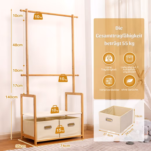 - Made of 100% bamboo, assembled total size: 74x35x140cm, maximum load capacity of the children’s clothes rack: 55kg.