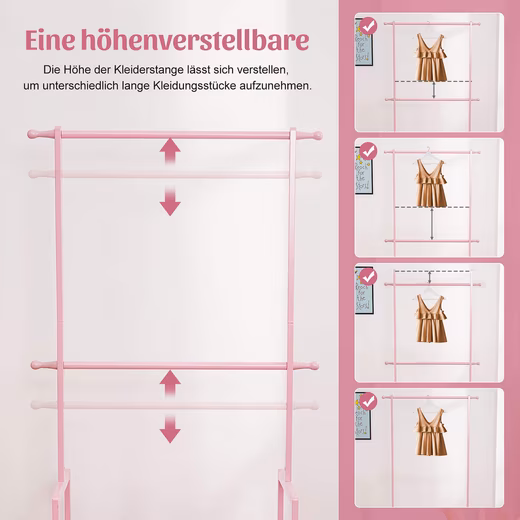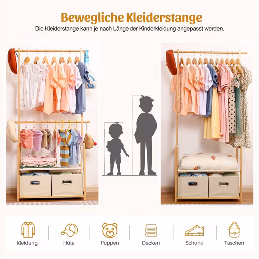 - 2 clothes rails are adjustable to suit different ages and sizes, suitable for different clothes and children’s growth.