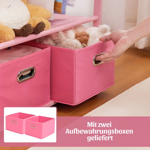 - Equipped with 2 storage boxes, provides more space for items such as toys, hats, shoes, books and other small items.
