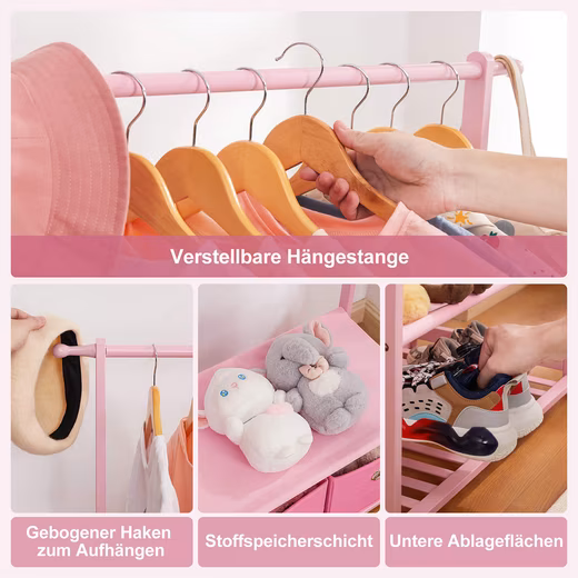 - Neat clothes storage for jackets, trousers, skirts, shoes, hats and bags, for your child’s easy-to-reach clothes and accessories.