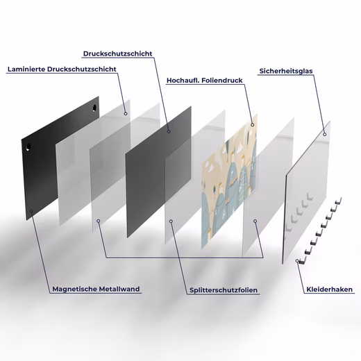 This glass coat rack is a practical, both magnetic and writable companion in the hallway, bedroom, living room, kitchen, study or children’s room. 3D depth, color intensity, saturation and contrasts also provide aesthetics.