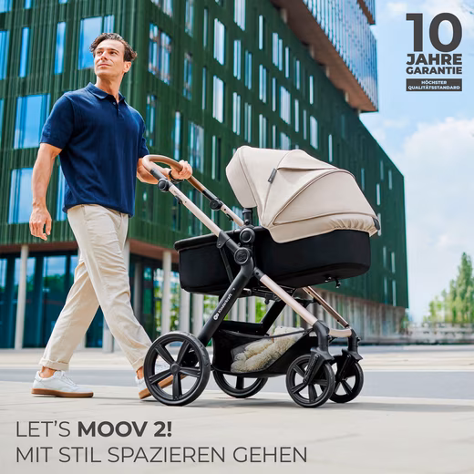 The MOOV 2 stroller ensures comfort from the very first days of life. Thanks to the large carrycot, the stroller can also be used by older children. With the soft insert, your child will feel so comfortable in the stroller that they won’t want to get out.