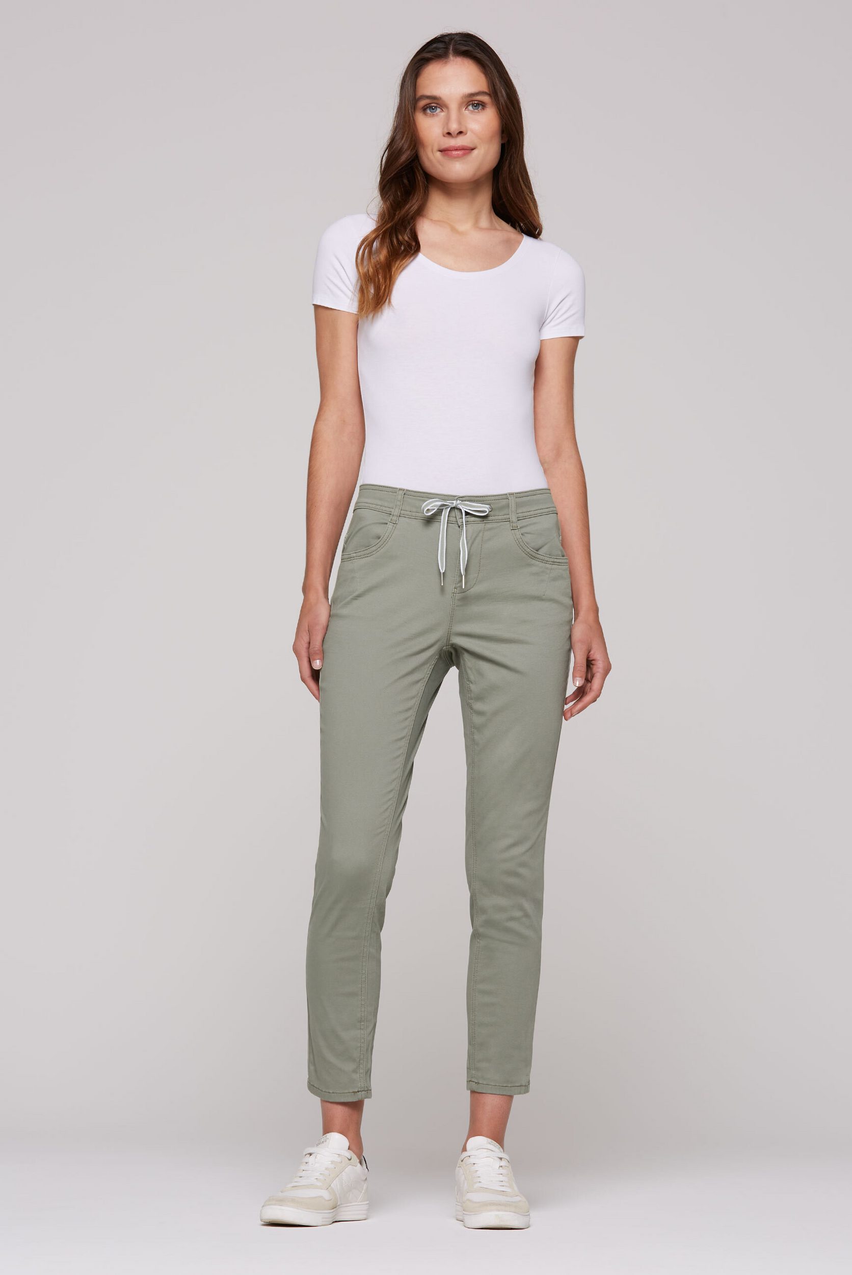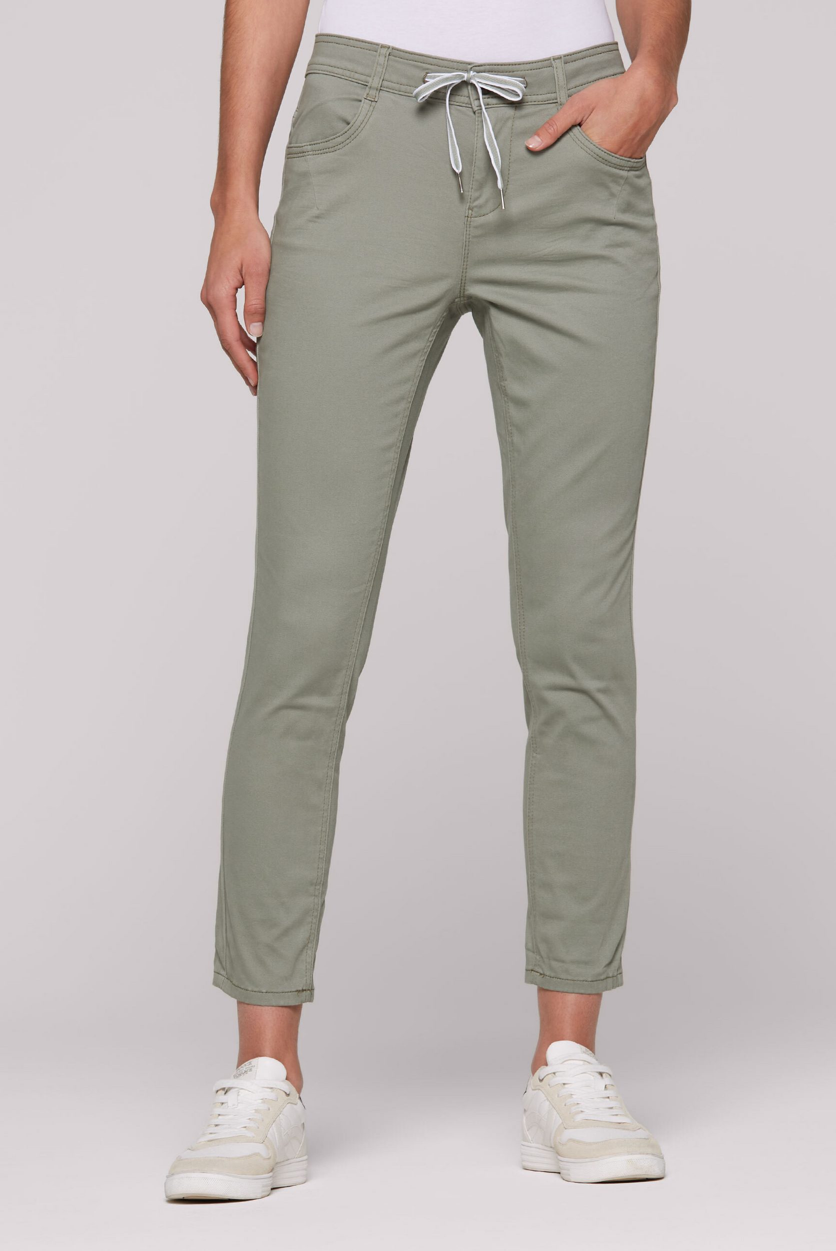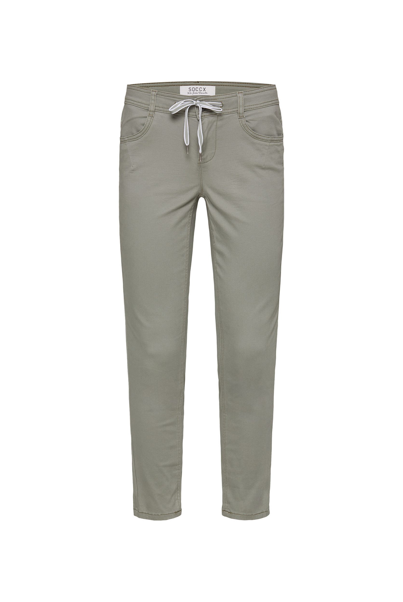 The Colored Denim from SOCCX brings new life to any denim outfit. Its comfortable fit features a practical zipper and a sporty drawstring waistband. The straight leg with turn-up hem cuts a great figure. The model is 180 cm tall and wears a size W27.