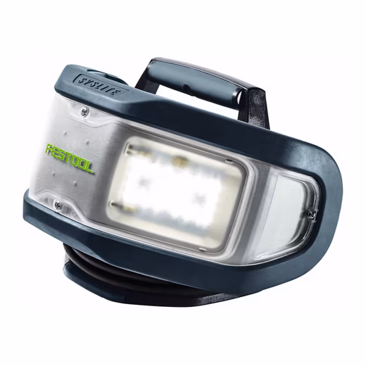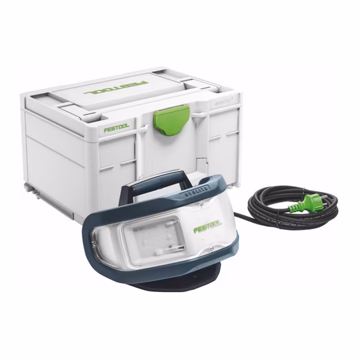 The Festool Syslite DUO construction light impresses with its unique LED arrangement for a 180° beam angle and homogeneous illumination. Its high luminous flux of 8,000 lumens provides excellent illumination over a large area with a daylight-like color temperature of 5,000 K. The Festool construction light is robust and durable, boasting a lifespan of up to 10,000 hours. The Syslite DUO is resistant to dust, water, drops, and impacts. All contact surfaces heat up to a maximum of 90 °C, and the 4.8 m cable length ensures a wide operating range, resulting in perfect handling during work. The construction light can be used standing on the ground or on surfaces, mounted on the Festool tripod, or attached to hooks using the hanging option on the back. Festool is a leading manufacturer of power tools, distinguished by a long tradition and high product quality.Â