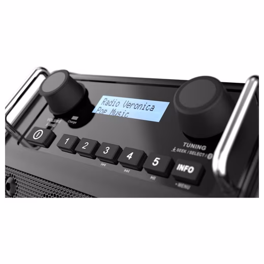 PerfectPro DPR2-18V. Stable entry-level model with the most powerful speaker available and DAB+. Can be used anywhere: in garages, sheds, workshops and outdoors. Large sound and small format that fits effortlessly into the tool bag.