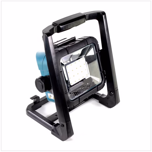 The Makita DML 805 work light is of high-quality construction and provides optimal illumination with its bright, far-reaching light. It features 20 LEDs, each with 0.5 watts. The included stand allows the work light to be rotated and locked into the desired position. Power is supplied flexibly via mains power or batteries; Makita 14.4V and 18V batteries can be used. The device has two brightness levels and a battery capacity indicator.