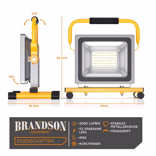 With the weatherproof and powerful 30W Brandson LED outdoor work light, you can conveniently use it as an emergency or work light even in the dark and rain. Whether outdoors or indoors, the light can be used, for example, for nighttime car repairs, DIY projects, or even outdoor camping.