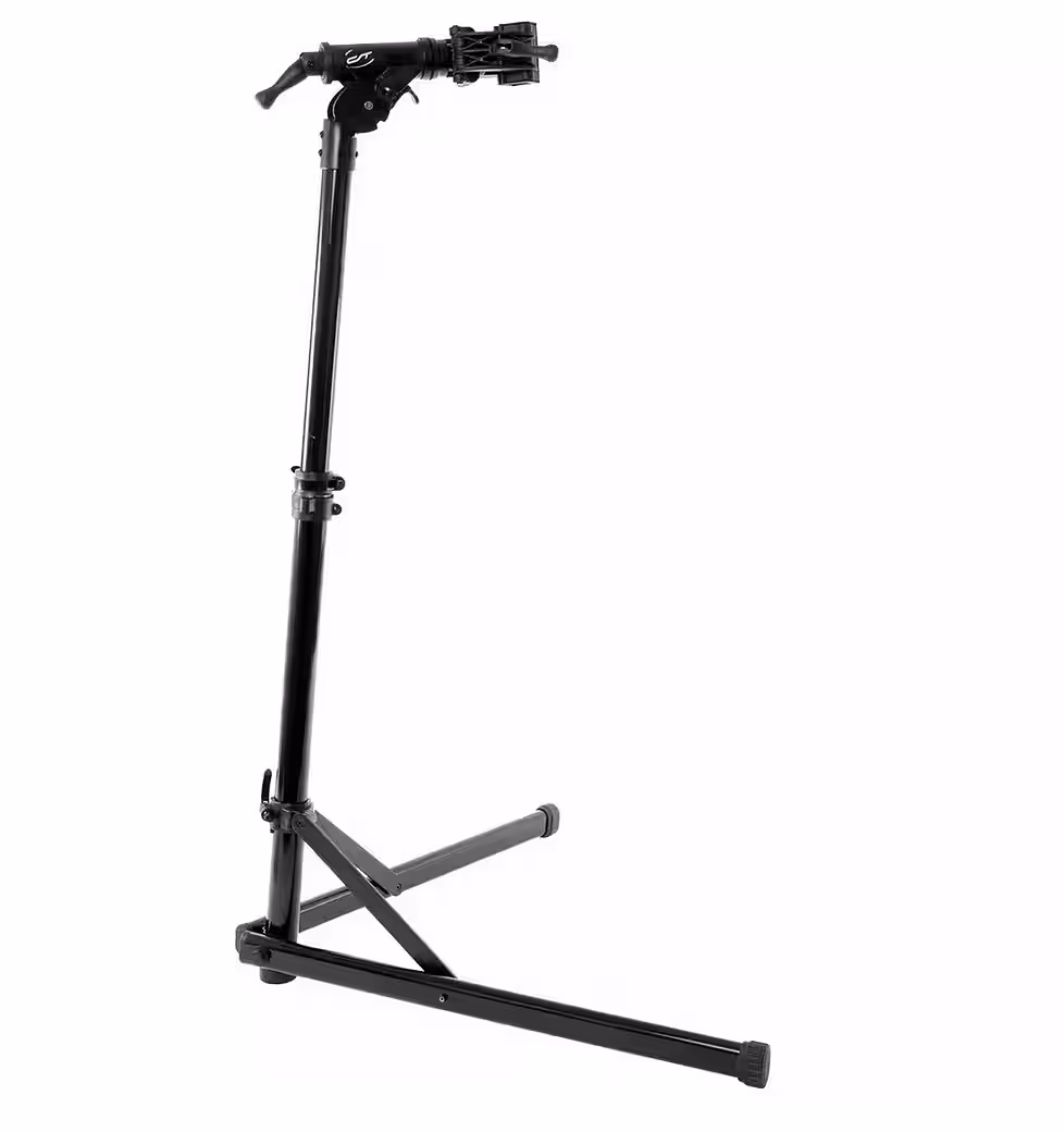 Award-winning in publications including MountainBIKE, RoadBIKE, and AktivRadfahren: Our foldable, mobile “Rock Steady” repair stand is like having a second pair of hands in your workshop. The one-handed clamp makes it incredibly easy to secure any bicycle weighing up to 30 kg. Ergonomic working is a breeze thanks to the 360-degree rotating workpiece holder and the user-friendly height adjustment. The “Rock Steady” boasts not only ease of use and stability, but also a lightweight design thanks to its aluminum and plastic construction, and a compact folded size. The “Rock Steady” fits even in the smallest corner, ideally stored in the matching CONTEC “Fiddle Case” with padding for your “Rock Steady” and an additional tool pouch inside.