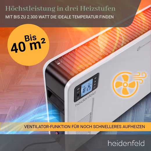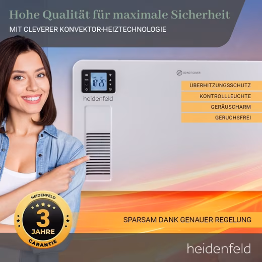 Otherwise, the Heidenfeld EK100 convector heater can also be mounted on the wall. No matter what you choose: With the convector, the ice age is finally over.
