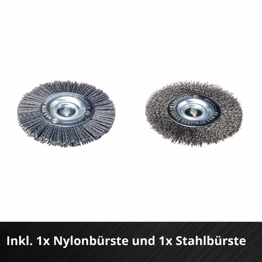 • Interchangeable brushes (1x nylon and 1x steel each)