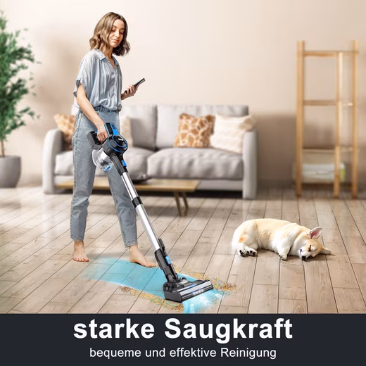 This cordless vacuum cleaner is equipped with a powerful motor that provides a stable high suction power, so that the cordless vacuum cleaner can easily remove dirt, debris, particles and pet hair.