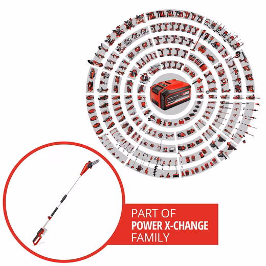 | Scope of delivery | Cordless pole pruner, chain guard, carrying strap, tension wrench |
