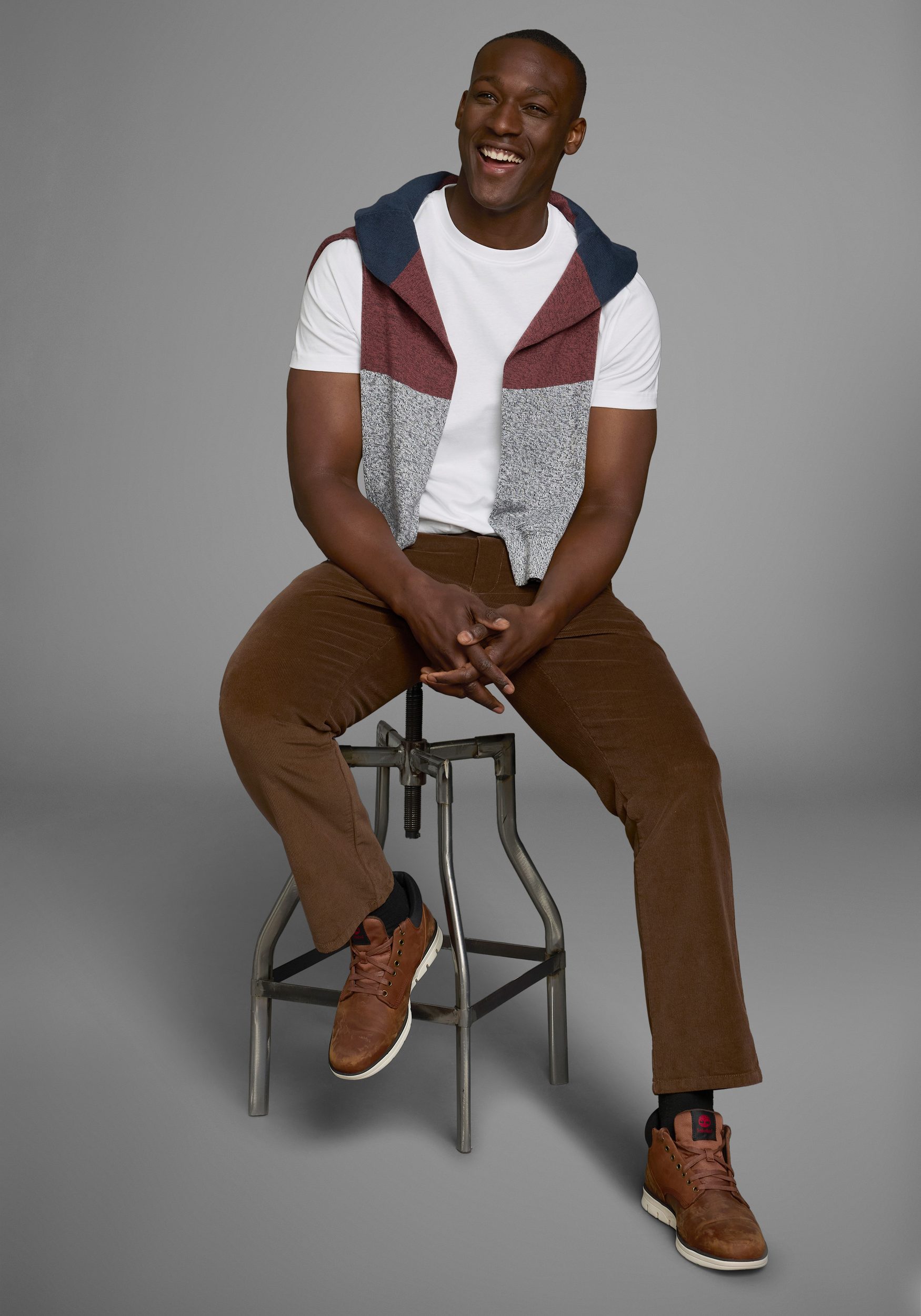 In your free time, you’ll look particularly good in these stretch-waisted corduroy trousers from Man’s World: These trousers are perfect for relaxed oversized looks with a loose sweater or shirt. Stylish sneakers complete the feel-good look.