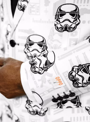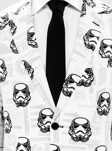 The OppoSuits Stormtrooper Jacket is a fashionable homage to the old Star Wars films and their iconic stormtroopers. A fashionable slim-fit cut and high quality are the highlights of this colorfully patterned OppoSuit. Make a statement at theme parties, conventions, or bachelorette parties!