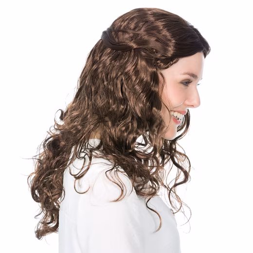 The Marina wig has beautiful curls, the front strands are skillfully pinned back, hair length approx. 60 cm, material: 100% polyester.