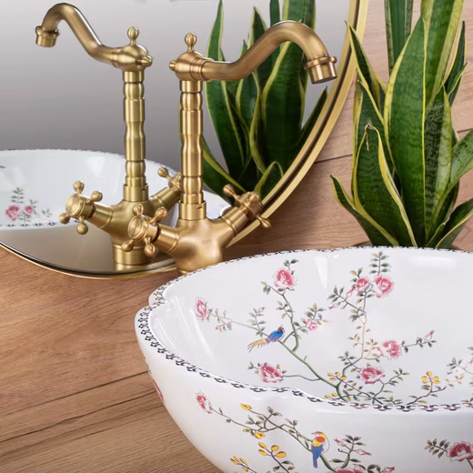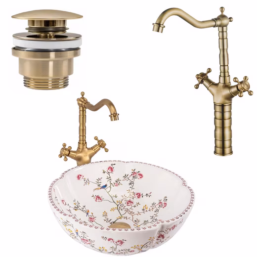 A round washbasin with a charming touch of naturalness. The surface is smooth and shines in a soft white tone, while subtle floral patterns add a playful accent. The organic shape of the basin gives the bathroom a soft, inviting atmosphere, while the delicate flowers bring a touch of freshness and liveliness to the room. The washbasin is supplied without accessories.